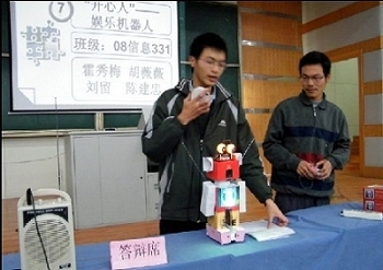 “建军杯”专业技能大赛是面向我系大二年级各个班级开展的一项特色品牌活动,包括理论知识和实践技能两个部分。通过举办专业技能大赛,旨在提高员工的综合电子设计、电路调试分析与电子制作等实践动手能力,同时为我系参加各市级、省级乃至国家级电子设计竞赛营造良好氛围。 经过一个多月的精心准备与酝酿,电子系第五届“建军杯”专业技能大赛实践部分比赛于11月16日晚在教学楼3101隆重举行。庄丽娟、姚庆文、黄祥源、沈治、麻丽娟、薛建斌、李月芳、陈志刚、张建根、顾六平、谈雪梅等老师担任了答辩评委。 系党总支书记庄丽娟老师致辞,她肯定了同学们对高水平技能的追求和创新精神,希望同学们向杰出员工邓建军学习,掌握好专业技能,服务社会。 比赛中,一件件作品的展示,掀起了一次次的掌声。同学们展示的声控闪光LED灯、简易多功能环境监测系统、AT89C51交通灯控制系统等充满创意的作品,这些作品虽然还很稚嫩,却说明了同学们超越梦想的潜力。经过选手的精彩答辩,技能部分的排名是前五位是:锅炉定时温控系统(08计控331)、“开心人”――娱乐机器人(08信息331)、AT89C51交通灯控制系统(08自动331)、抢答器 (08信息332)、无线接受报警器(08机电332) 。 最后,系副主任姚庆文老师对这场实践技能比赛部分进行了点评。 附:第五届建军杯获奖名单  评委老师在给选手们打分 员工对自己的作品做精彩讲解 |