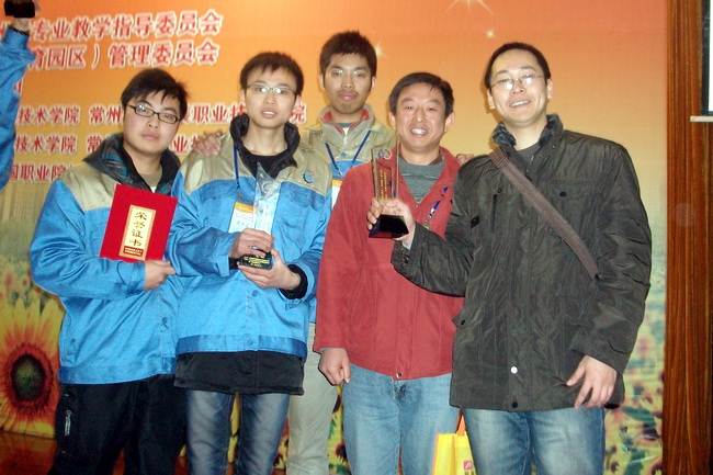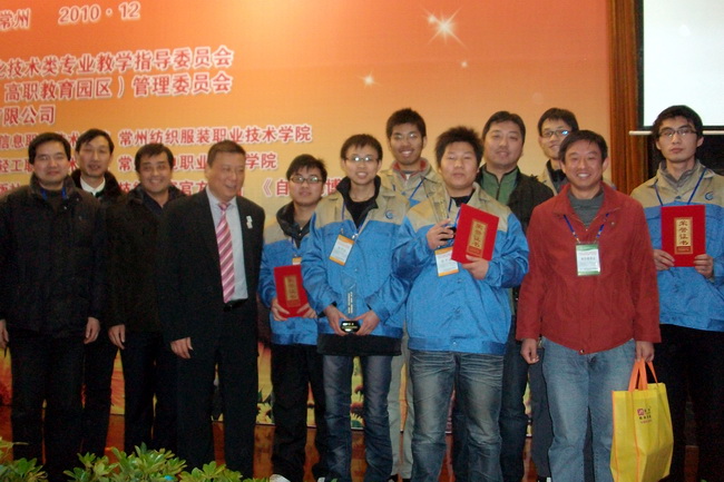 公司“三菱代表队”由电子系08机电332赵立志、08自动试1罗霆、08机电631李育梁组成的,以优异的成绩获得所有队伍中总分第二名的骄人成绩;“西门子代表队”由电子系08计控331杨肖肖、冯彬,08百兴班冯雷三位同学组成,以优异的成绩获得西门子组第一,比赛总分第六名的成绩。在开幕式上,第二届比赛一等奖获得者李育梁同学作为参赛选手代表发言,赛后赵立志同学作为一等奖获奖选手接受了江苏教育电视台的采访。在长达二个月的集训中,同学们在指导老师的带领下,放弃周末的休息时间,充分发挥了吃苦耐劳、勤奋学习的精神,最终取得了骄人的成绩。