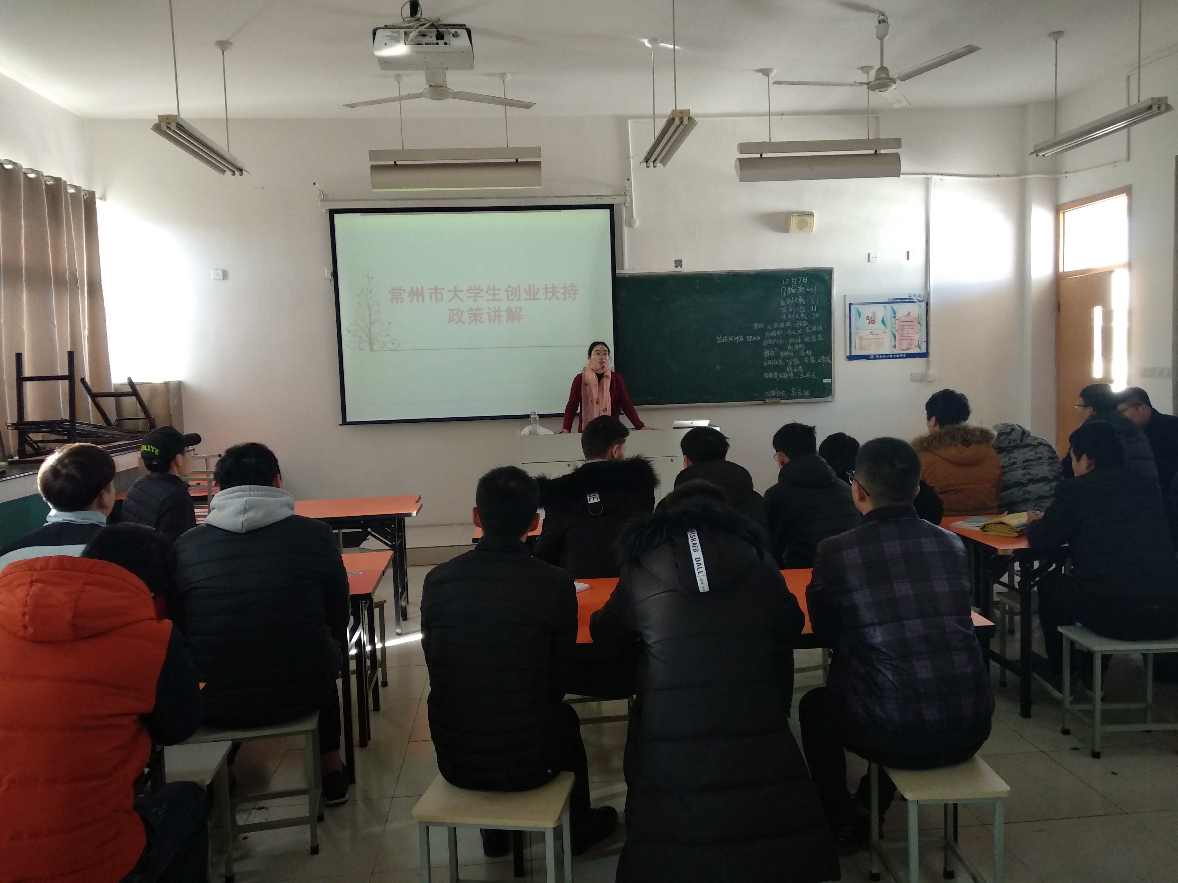 严老师认真讲解了目前常州市老员工创业扶持的相关政策,相关扶持政策有:创业项目资助、一次性开业补贴、创业带动就业奖励、创业社会补贴等等。并列举了多个有代表性的案例,加深同学们对创业扶持政策的进一步了解