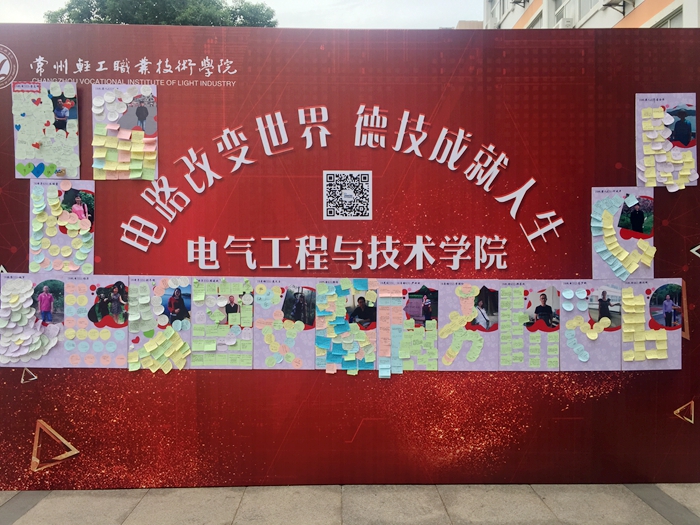 迎新后恰逢教师节到来,尽管初次见面,班主任们细致的工作已经赢得了同学们的信任,新同学们亲手写下了对大学班主任的祝福,提前将祝福的纸条精心布置在各班的展板之上。有的同学写下了对班主任“温文尔雅有内涵”的初印象;有的同学在写下节日祝福的同时也表达了对老员工活的希冀;有的同学画了一幅班主任的Q版头像……9月10日一大早,五颜六色的祝福铺陈在工训楼门口,迎接着老师们的到来。电气公司师生以这种朴素的方式诠释了尊师重教、崇德育人的内涵,这也是新生入学后感恩教育的第一课。