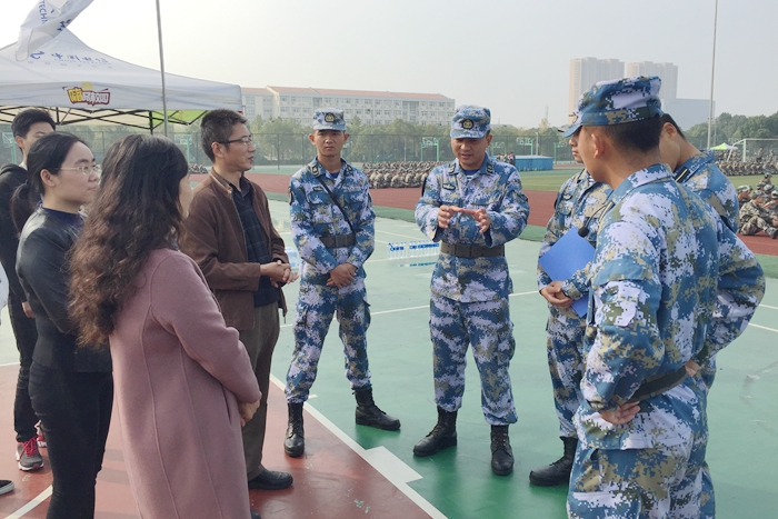 首先,大家认真听取了教官对于军训开展情况的汇报,了解员工们的思想动态和军训进展情况,并为教官们的敬业精神点赞。随后辅导员们利用军训休息时间,分组到各个营中与员工开展交流,鼓励员工们发扬艰苦奋斗的军队作风,保持积极向上的良好风貌、塑造强身健体、报效祖国的青年风范。