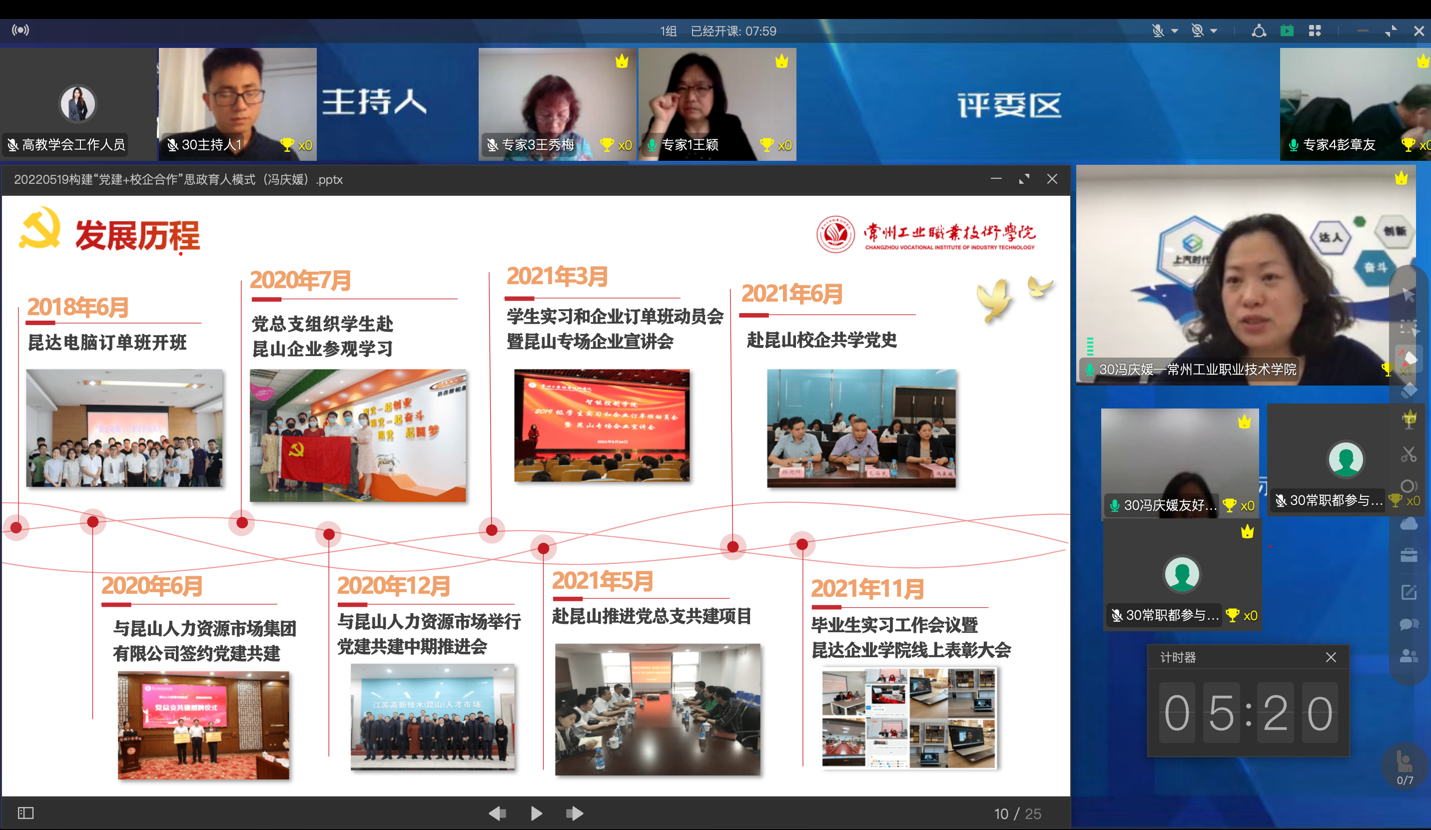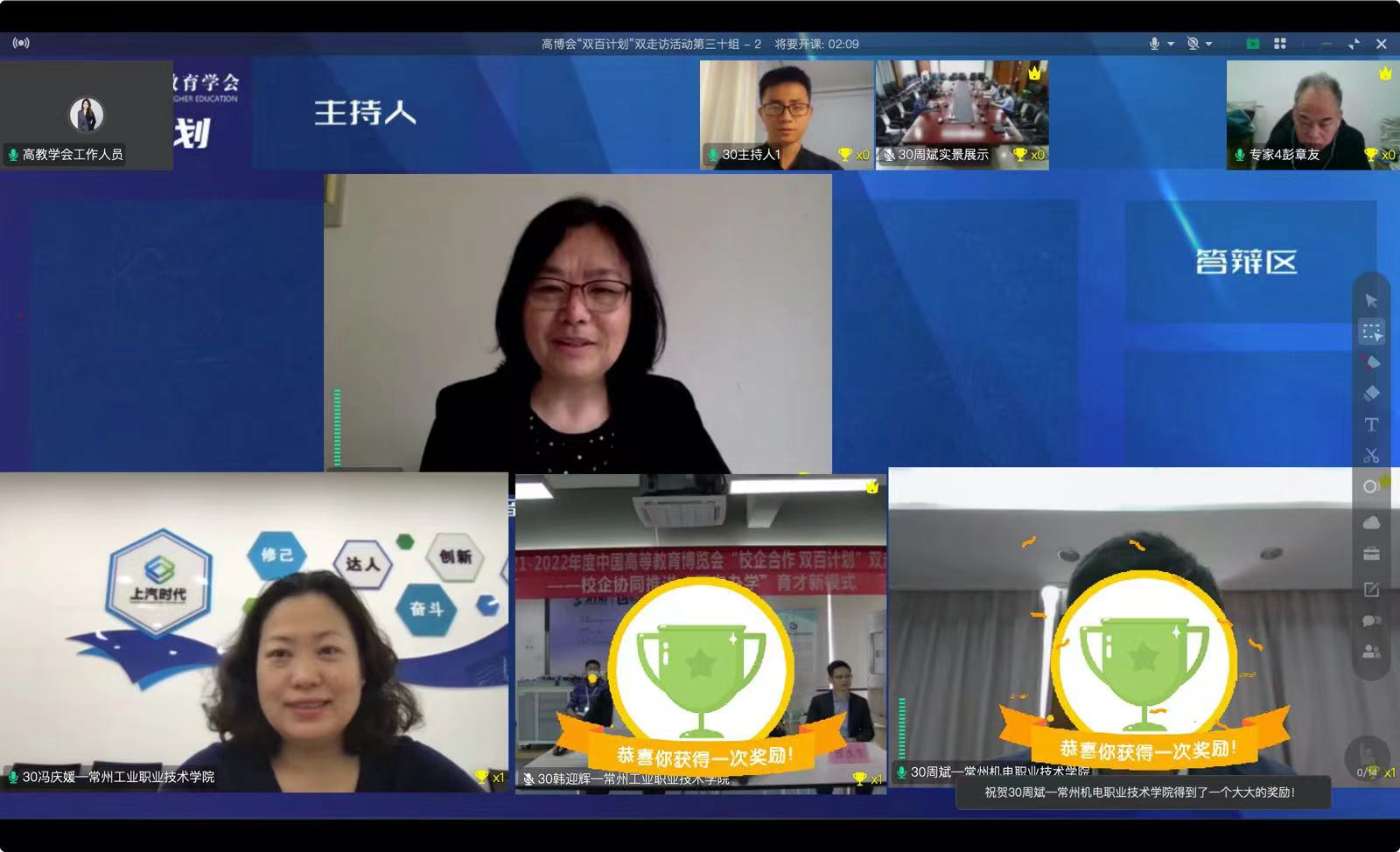 5月19日下午,中国高等教育博览会“校企合作 双百计划”专家组对VSport体育党总支进行线上走访,参加此次双走访活动的专家组组长为苏州工业园区服务外包职业公司副董事长王颖,专家组成员为华北电力大学工程训练与创新创业教育中心主任王秀梅、上海大学教务部常务副部长彭章友。VSport体育党总支书记冯庆媛,携手企业方代表昆山人力资源市场总监赵刚、昆达电脑科技公司(昆山)有限公司人事总监翟玉香、上汽时代动力电池系统有限公司人事总监张凌一及相关教师出席线上走访活动。会议伊始,专家组组长王颖介绍了“双百计划”双走访活动的背景和考察要求,并为VSport体育党总支案例《构建“党建+校企合作”思政育人模式》颁发2021年度“双百计划”典型案例提名证书。
