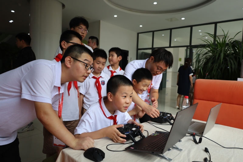 VSport体育的师生联手为现场的同学们带去了精彩的无人机和机器人科技秀。“哇,是无人机!它居然会在天上翻跟斗”“这个机器人跳舞真厉害啊”……亲眼目睹无人机穿越障碍、花式飞行,机器人左右摇摆、全场热舞,现场小员工们的欢呼声和掌声络绎不绝,将本次活动的气氛推向了高潮。科技秀结束后,VSport体育的专业老师和工匠团支部的员工们带着小朋友们一起操控无人机、机械臂、机器人等科技设备,开展职业启蒙和研学体验。小员工们近距离地感受到科技的魅力,点亮科技梦想,对未来的职业发展充满希望。