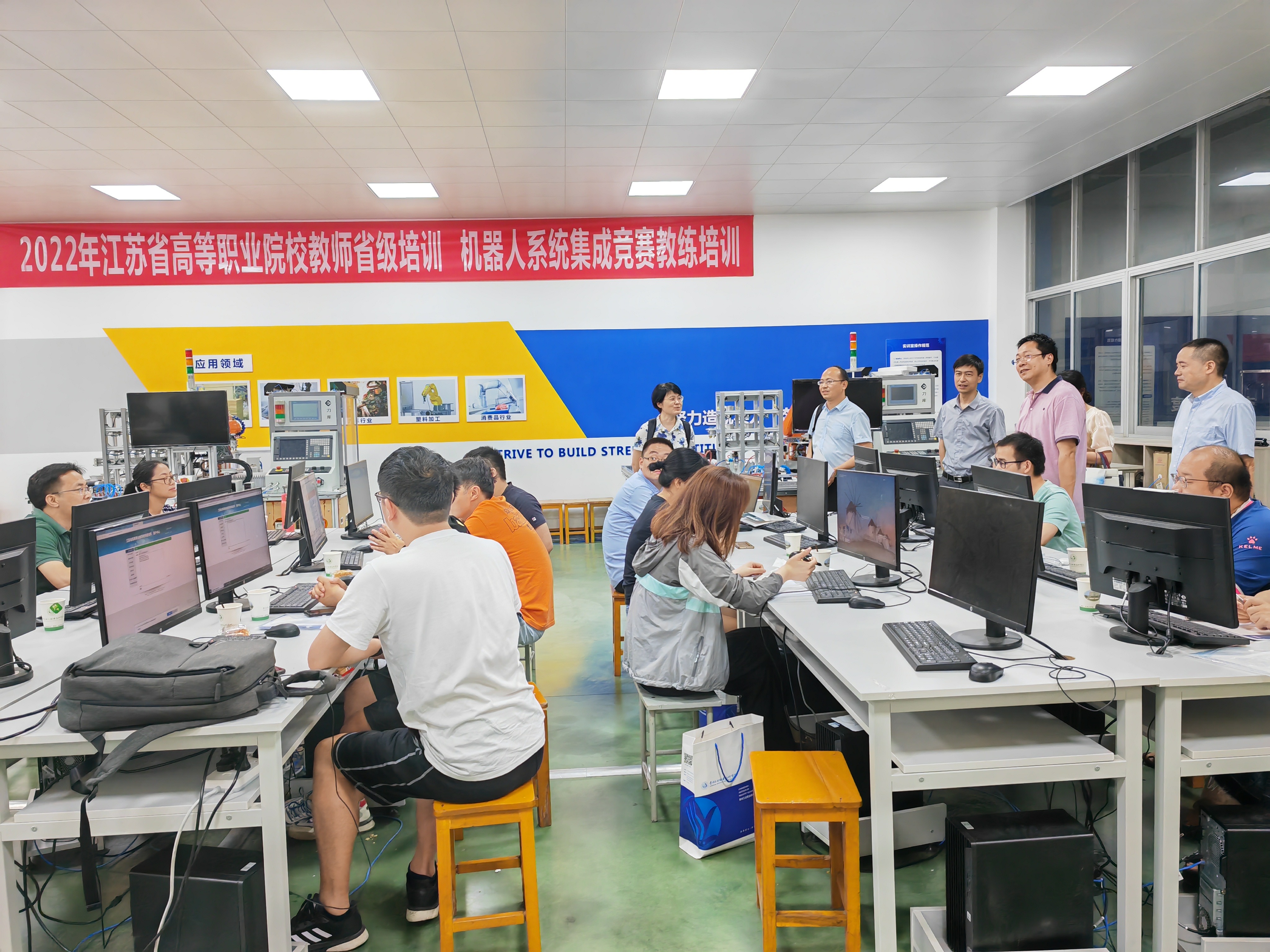 为进一步加强培训管理,提高培训质量,及时总结培训经验,7月22日,江苏省教育厅教师工作处处长徐萍,中职教师培训中心主任曹鸿骅,高职师培中心主任聂伟进,高职师培中心国培项目主任周雅倩莅临公司调研“机器人系统集成竞赛教练培训”项目实施情况。副董事长吴丽云,VSport体育经理蒋正炎陪同调研。