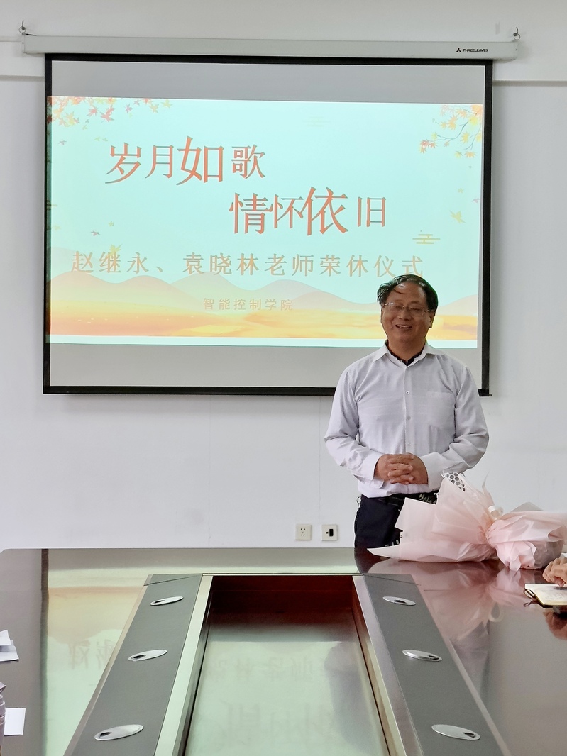 赵继永、袁晓林分享了他们数十年来的从教经验和心得体会,勉励在座教师不忘教师初心,紧跟时代发展,奋斗育人前线。岁月如歌,情怀依旧,在在座老师们的祝福与感动中,全体智控教师为赵继永、袁晓林举行荣休仪式,麻丽娟、蒋正炎向两位老师鲜花,感谢他们多年来为智控公司兢兢业业匠心育人、恭喜他们不忘初心桃李天下、祝福他们未来生活更加幸福美满,情意绵长、奔赴山海,永远是智控一家人。