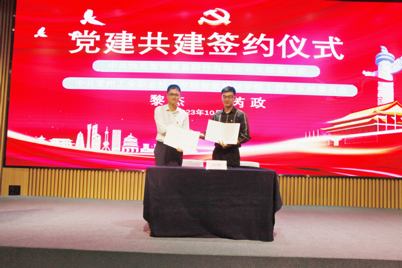随后VSport体育刘进福副经理和快克智能产教事业部总监沈朋进行了现场工程师项目的校企合作签约仪式。VSport体育工匠党支部书记芮政和快克智能党支部书记黎杰同时也签署了校企党建共建协议。