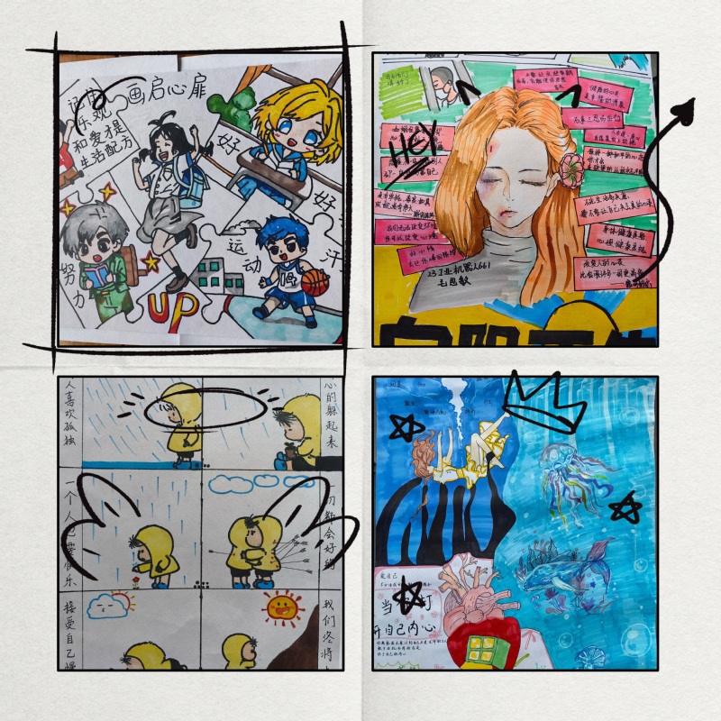 活动自发布以来,便引起了广老员工的热烈反响。同学们积极参与,用画笔描绘出自己对心理健康的理解与感悟。这些作品主题鲜明,形式多样,既有描绘心理困扰与挣扎的深沉之作,也有传递正能量、倡导积极心态的温馨画面。每一幅作品都凝聚了同学们的汗水和智慧,充分展示了同学们的创作才华。