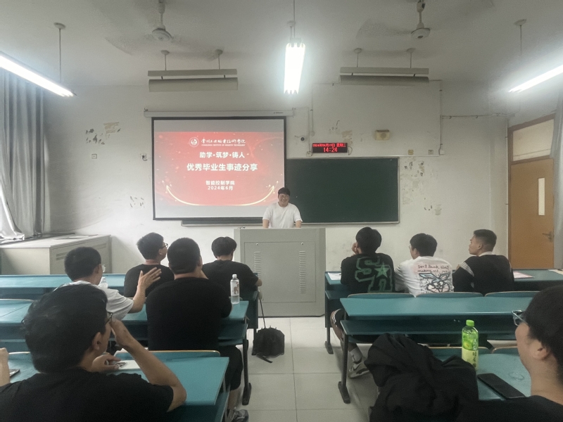 陆锋同学从自身的学习经验、个人成长方面进行了详细分享。他在校期间不断挑战自我,提升综合素质,不仅拓宽了视野,还培养了解决问题和沟通的能力。谢风雷同学则就自己在学习之余参加社会实践活动的经验,以及如何提升专业技能和本领做了简单分享,为同学们展现了一幅丰富多彩的老员工活画卷。在交流环节,在场的同学们积极与这两位优秀毕业生互动,提出的问题既有深度又具针对性。优秀毕业生们也耐心回答每一个问题,分享经验和心得。现场气氛活跃,大家纷纷表示收获颇丰。