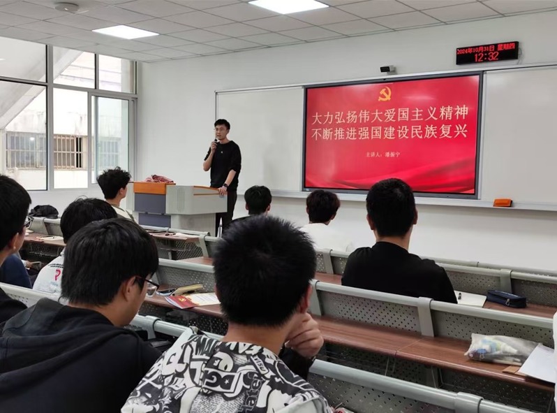 潘振宁作“大力弘扬伟大爱国主义精神,不断推进强国建设民族复兴”专题党课,围绕10月1日出版的2024年第19期《求是》杂志习近平总书记的重要文章《大力弘扬伟大爱国主义精神,把强国建设、民族复兴伟业不断推向前进》带领同学们学原文、讲精神,从新时代爱国主义的精神内涵、爱国主义精神历史回顾与经验总结、爱国主义精神的现实体现、新时代高职学子如何弘扬践行爱国主义精神等方面进行阐释,勉励同学们要不断加强理论学习、提升个人修养,从小事做起,成长为高素质高水平的堪当中华民族伟大复兴技术技能人才。