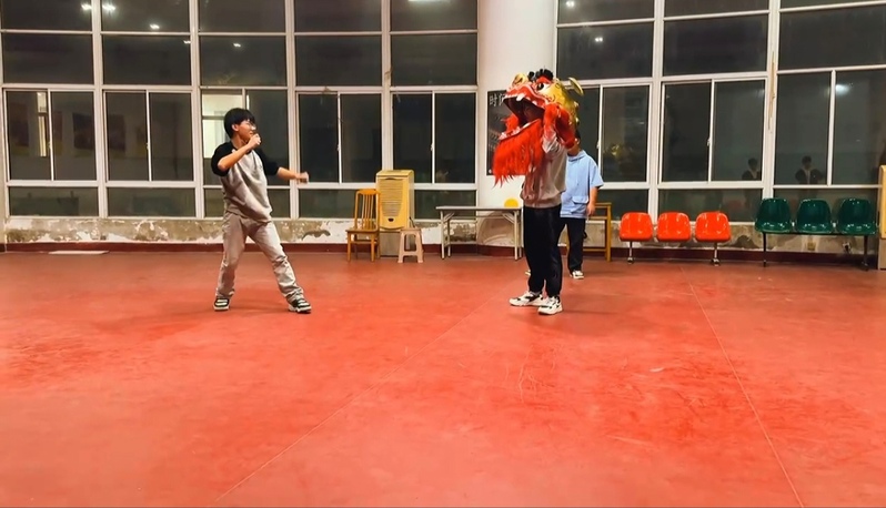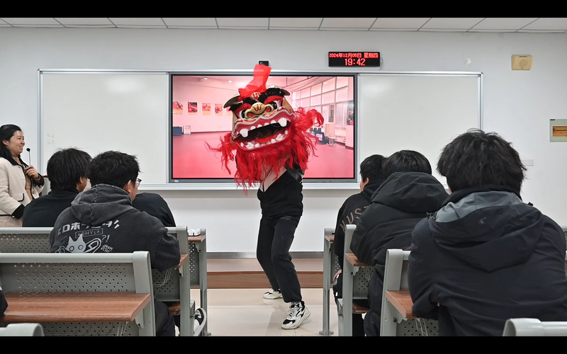 亲身体验,学习舞狮动作。同学们在专业师傅的悉心指导下,亲身体验了马步、弓箭步、探步、跳步等舞狮基础步行,以及礼拜、站立、蹲坐、拍腿、甩球、跳跃、旋转等核心动作。通过实践,同学们不仅掌握了舞狮的基本技巧,还深刻感受到了这一传统技艺的独特魅力。