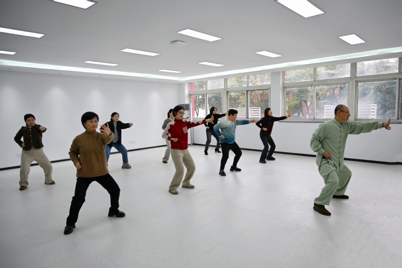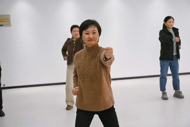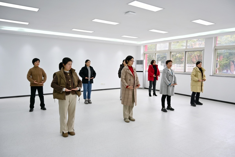 体育公司商秀海老师以两手托天理三焦起势,带领大家开启传统养生功法体验。动作要舒展如鹤,呼吸需绵长深远,伴随着商老师的口令,老师们舒展肢体、调整呼吸,体验“以形导气、以气养神”的养生之道。通过练习八段锦,大家不仅感受到了中华传统养生文化的魅力,还在轻松愉悦的氛围中锻炼了身体,缓解了工作压力。