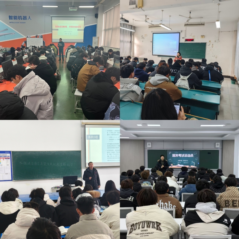 2023级和2024级各班级举行“加强诚信教育,共筑优良班风”主题班会。班主任带领同学们深入学习了《你好,大学》违纪处分办法,特别是旷课、考试违纪的严重后果,并告诫同学们务必诚信考试、诚实做人,树立正确的考试观念。