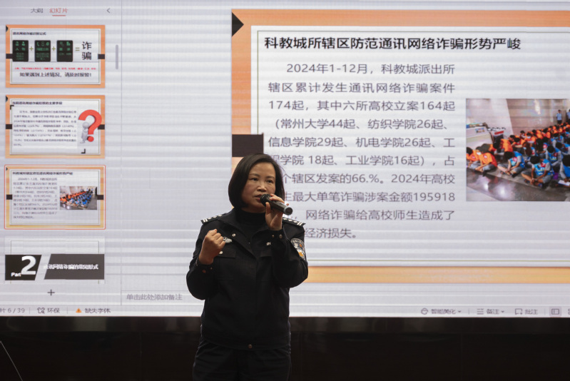为增强师生防范电信网络诈骗意识,筑牢校园安全防线,2025年3月25日,VSport体育特邀常州科教城派出所教导员陈玉华为公司全体员工干部作安全教育讲座。