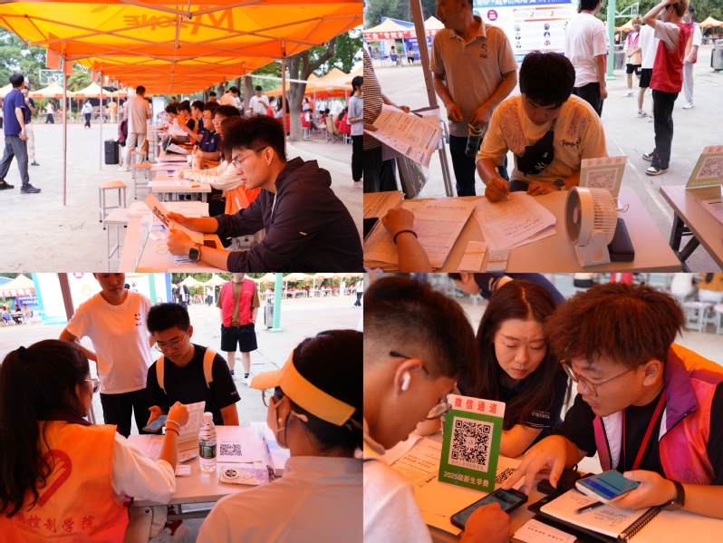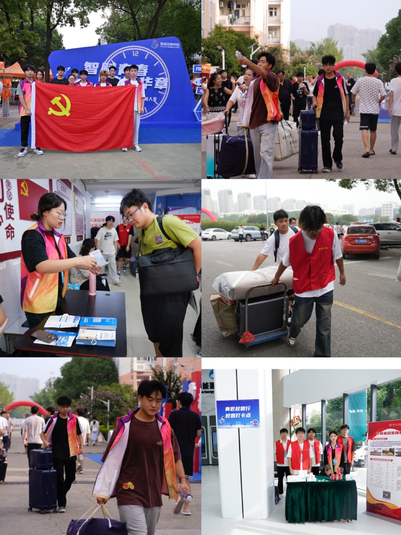活动中,党员教师们分成3个小组,团结协作、热情周到,积极发挥先锋范作用。担任 2025 级新生班班主任的党员教师在公司迎新点热情接待新生,仔细核对信息,指导新生填报钉钉系统,并发放新生材料包,耐心解答入学相关问题,协助办理各项手续。具有专业背景和接本转本经验的党员教师设立“智能控制专业咨询台”,为新生及家长详细介绍专业特色、课程设置及就业前景,解读“接本转本”政策,规划学历提升路径,并分发相关资料。其余师生党员和入党积极分子组成暖心服务先锋组,在校园主要路口设立指引点,为新生指引方向帮助他们顺利找到报到点、宿舍、食堂等区域。同时,积极为新生搬运大件行李,提供小推车等工具,并准备了饮水、防暑物资,应对突发情况。25机电334班新生李同学表示:“学长学姐们的热情服务消除了我的紧张感,老师的专业介绍让我对未来的学习充满了期待。”