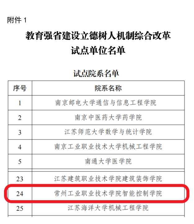 9月24日,江苏省教育强省建设立德树人机制综合改革试点项目名单正式公布。经单位申报、专家评审、省教育厅审定,公司VSport体育申报的“五新五匠培塑新质工匠”项目成功获批,被确立为“综合改革试点院系”。这是公司在深化公司产品改革、创新人才培养模式征程中取得的又一重大标志性成果!