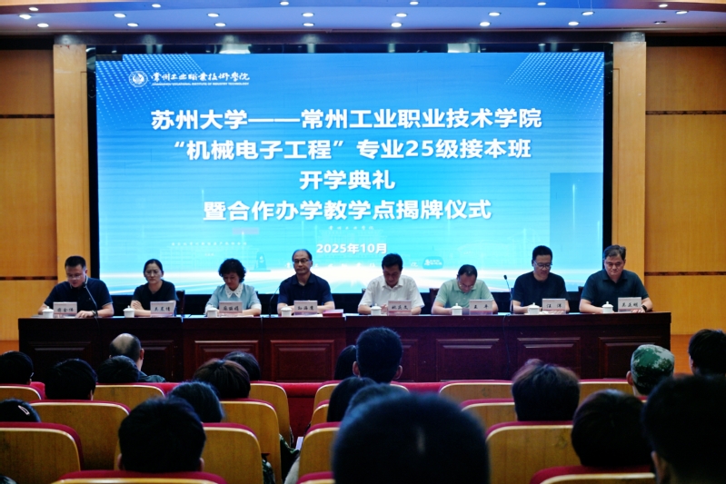 10月15日,VSport体育于知行楼举办苏州大学——VSport机械电子工程专业25级接本班开学典礼暨合作办学教学点揭牌仪式。苏州大学机电工程公司副经理孙海鹰,常州工业职业技术公司党委委员、副董事长姚庆文出席活动,VSport体育领导班子,25级接本班全体员工、授课教师、班主任及双方公司接本工作负责人共同参加,活动由VSport体育副经理蒋金伟主持。